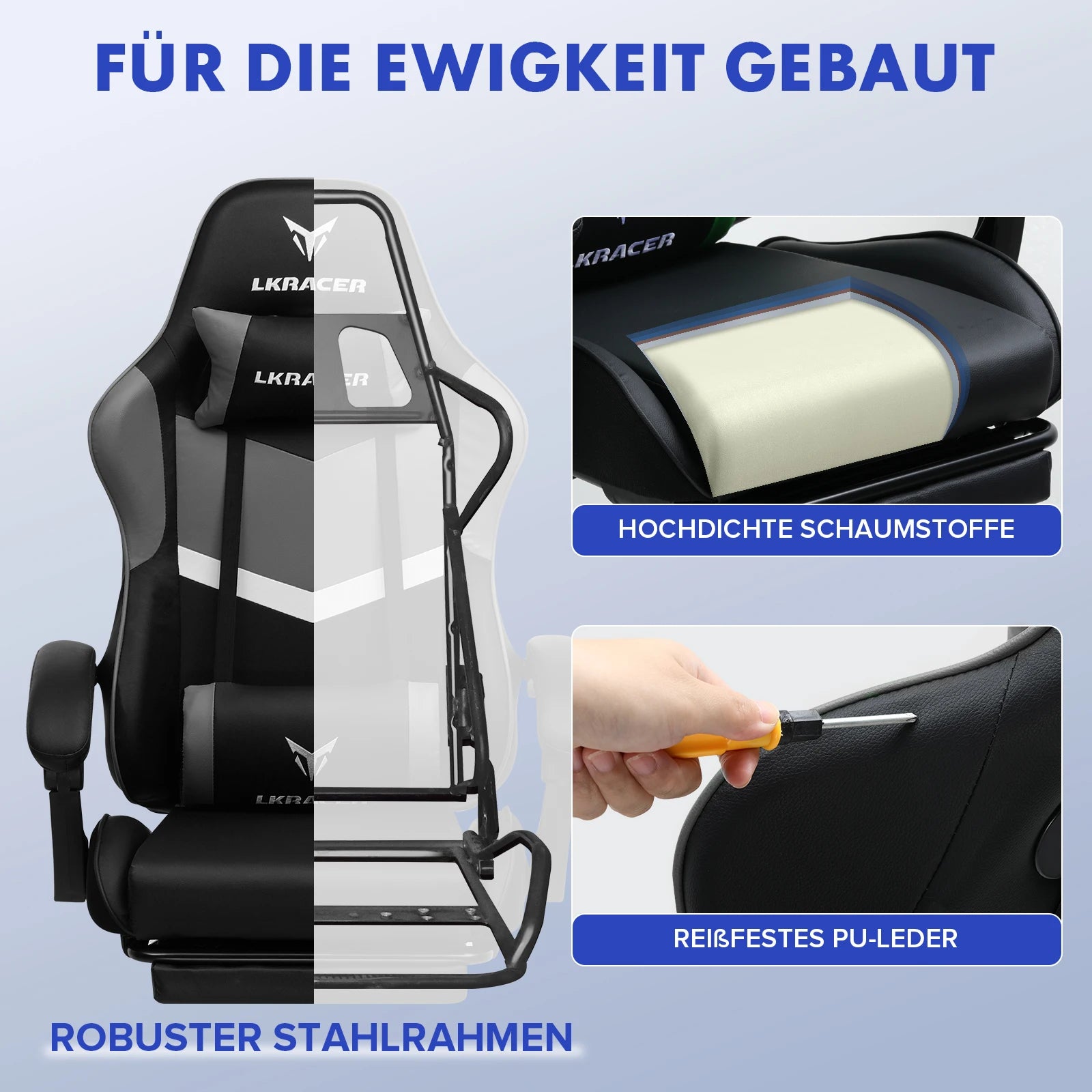 LUCK RACER Chaise de jeu avec repose-pieds chaise de bureau ergonomique avec oreillers lombaires réglables, oreiller Chaise de jeu, chaise de joueur réglable en hauteur, capacité de charge de 150 kg