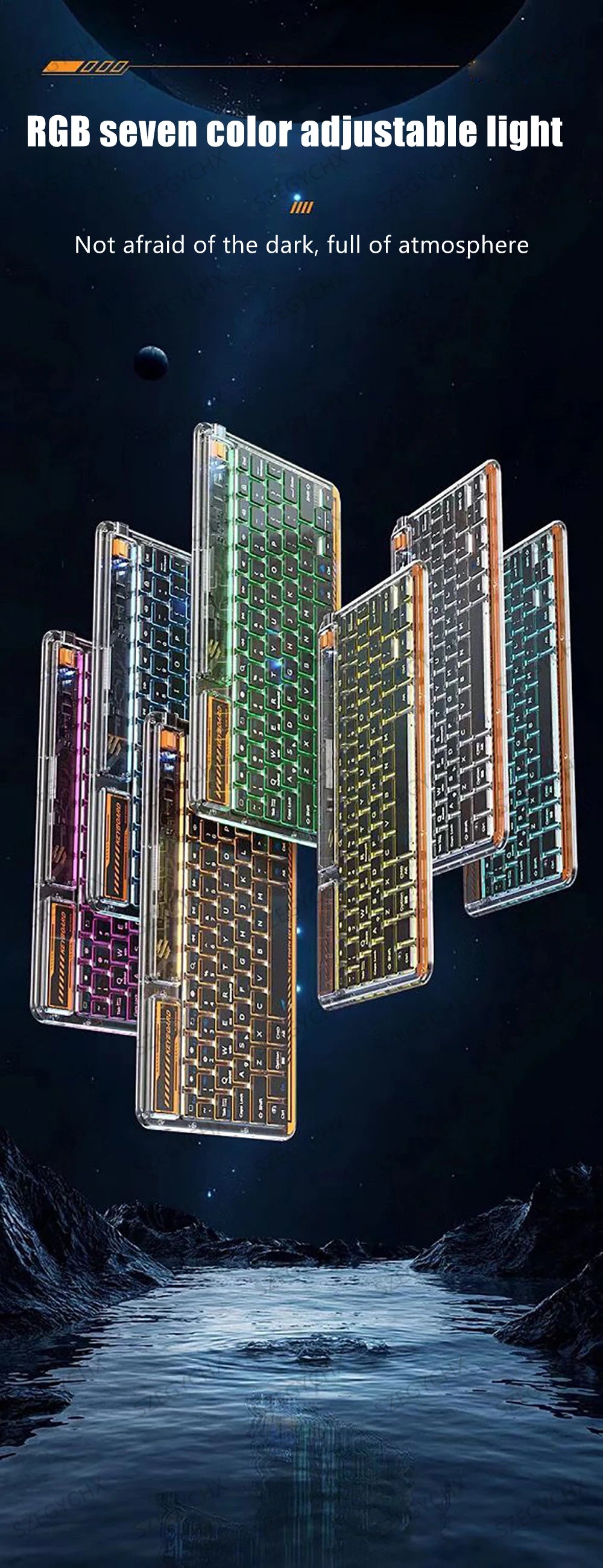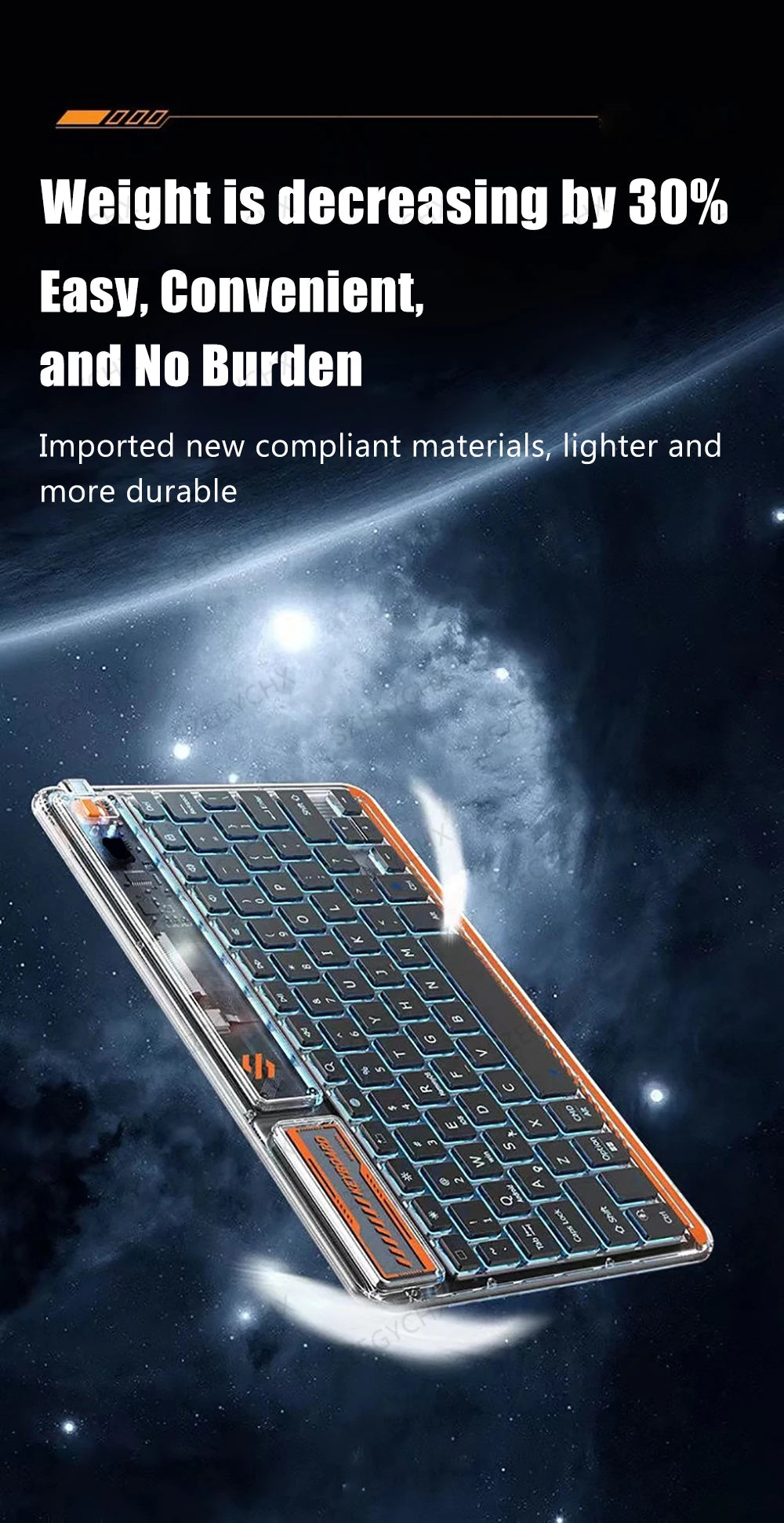 Nouvelle conception améliorée-Coque de clavier transparente, vous pouvez clairement voir la structure interne du clavier, avec l'effet de rétroéclairage du clavier Bluetooth. Laissez-vous avoir une expérience de frappe différente et ne peut pas obtenir assez de ce clavier.
