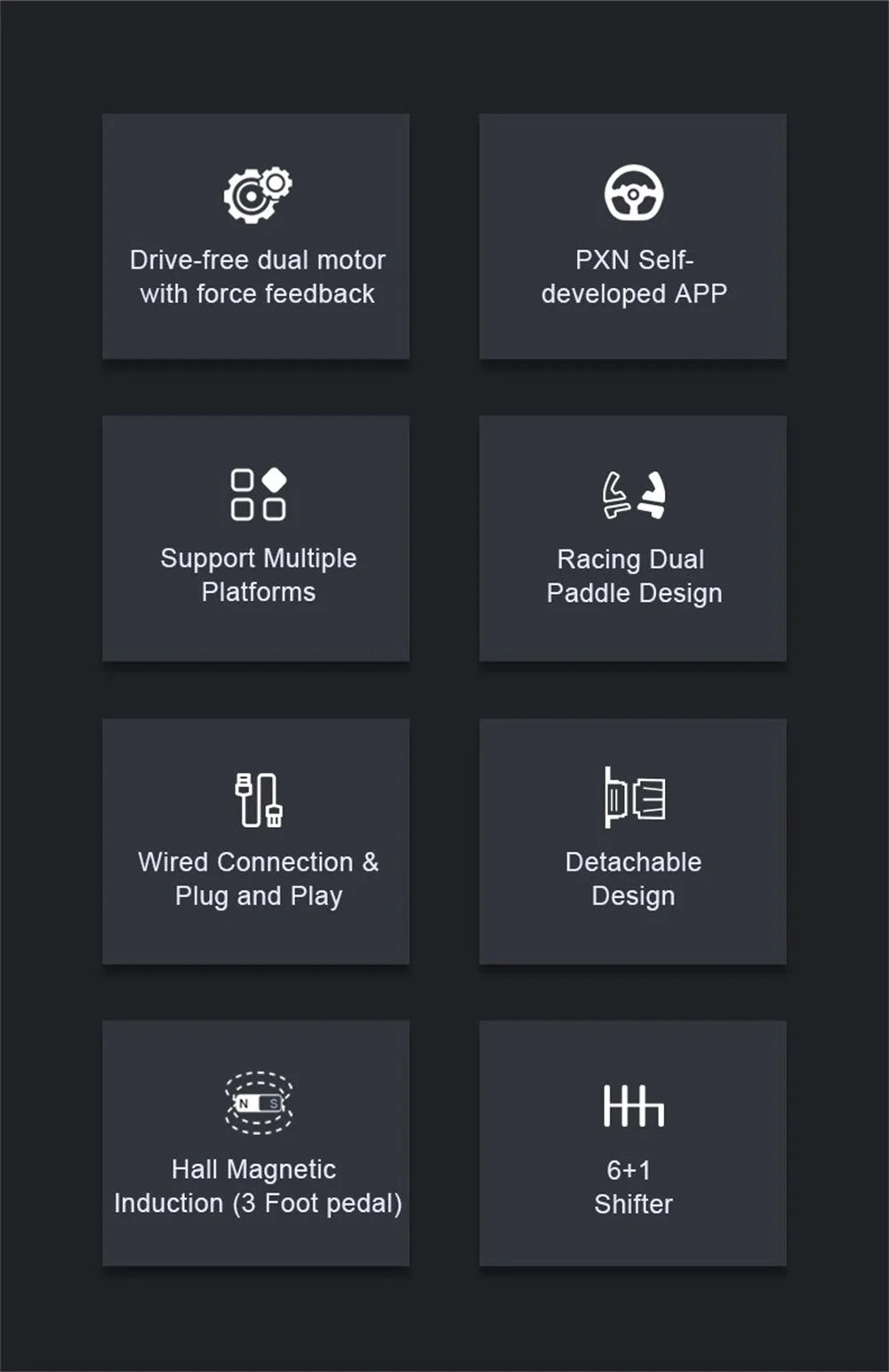PXN Application dédiée auto-développée Réglez le volant via l'application [PXN Wheel] et importez les paramètres du jeu en un clic